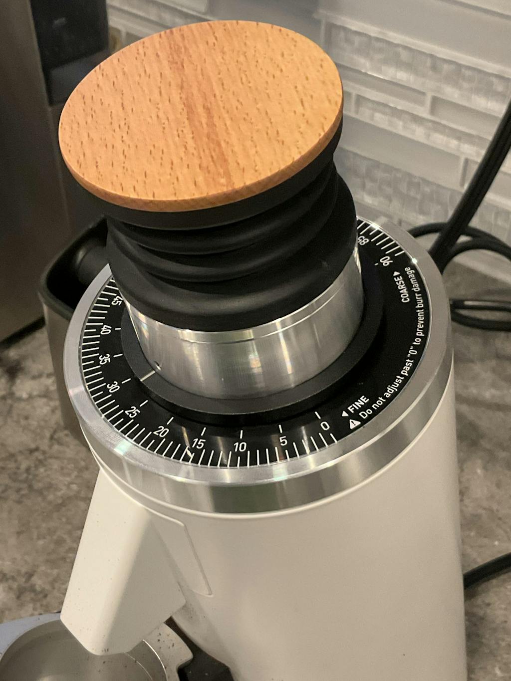 Our exclusive aluminum black DF64 Premium Dial Indicator ring (also available for the DF54 here) provides an elegant upgrade that allows you to adjust your zero point with smooth, accurate control. Built as a step up from the stock option, it delivers a refined dialing experience and a premium feel every time you set your grind. To adjust, simply loosen the set screw on the back with the Allen key that comes with your DF54 grinder.
